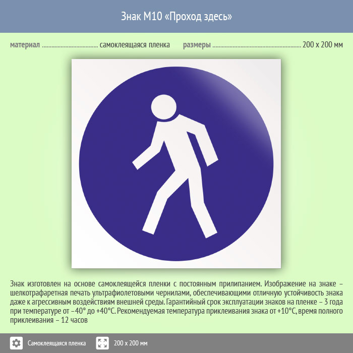 Знак M10 «Проход здесь» (пленка, 200х200 мм) в Лосино-Петровском купить